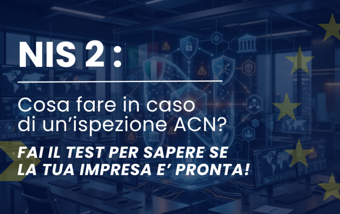 Direttiva NIS2: adeguamento obbligatorio Proteggi la tua azienda e rispetta le scadenze dell'Agenzia per la Cybersicurezza Nazionale (ACN). Oggi la Direttiva NIS2 non è più [...]